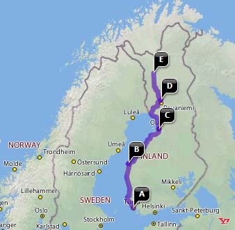 Výchozím bodem našeho putování do prý nejkrásnější části Finska bylo náměstí (=Kauppatori) v Turku – sraz 20:30. Už na začátku našeho erasmáckého působení jsme byli upozorněni, že si Finové velmi potrpí na „punctuality“, česky přeloženo - jsou opravdu dochvilní. Ovšem, zřejmě poučeni nedochvilností ostatních národů, na srazy s námi chodí zásadně pozdě. Ve smluvenou dobu se na poměrně úzkém chodníku kolem hlavní silnice tlačilo kolem devadesáti nadšenců, čekajících na dva finské autobusy. Ty ale ne a ne se dostavit. Ve volné chvíli jsme měli alespoň příležitost porovnat velikosti našich zavazadel s obsahem na šest dní. Mé obavy, že příruční kufr do letadla bude extrémně velký, byly liché. Po tom, co jsem viděla napěchované kufry a krosny naší pánské společnosti, se mi opravdu ulevilo. A ještě víc, když po půlhodinovém čekání na vedlejším kostele odbila devátá hodina a oba naše autobusy dorazily. Tím se pro nás otevřela cesta na samý sever Evropy…